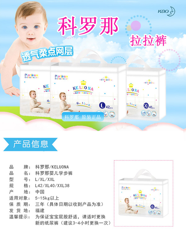 采用全芯體吸收層,不斷裂,不起坨,貼身綿柔,配合科學(xué)化的產(chǎn)品設(shè)計(jì)不僅讓尿液吸收速度加快更令吸收量大幅度提升到了800ml。極致熱風(fēng)底膜,超過(guò)10000個(gè)透氣孔,透氣舒適。親膚透氣底膜,良好的透氣性的PE膜,形成有效的縱向?qū)α骺焖賹?dǎo)出廢氣和濕氣,沒(méi)有紅屁屁,讓寶寶的皮膚盡情的呼吸。360°雙層立體防側(cè)漏,寶寶怎么動(dòng)都不怕。