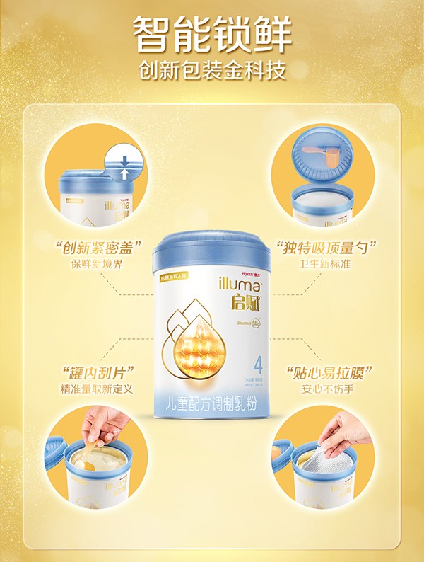 惠氏藍鉆啟賦4段兒童奶粉(升級版)屬于愛爾蘭進口產(chǎn)品,適用于兒童,添加了膽堿、;撬、DHA、ARA/AA等常規(guī)強化配方,以及OPO、葉黃素、β-胡蘿卜素特色強化配方,其中OPO含量為3g/100g,其低聚半乳糖為乳清濾出液來源,含量為4.6g/100g。